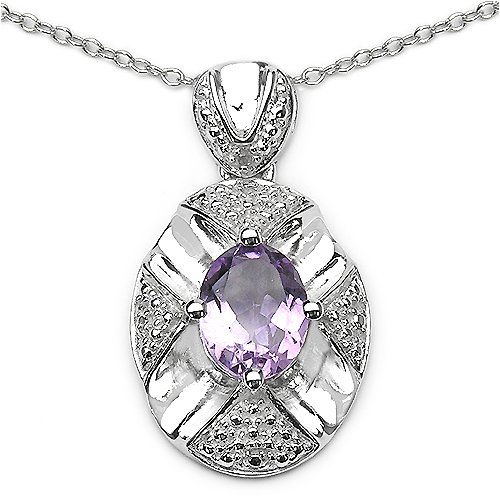 See more technical detailsBuy 1.85 Carat Genuine Amethyst Oval & Diamond Accents Sterling Silver Pendant Now