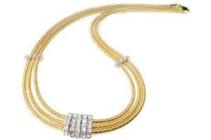 Buy 18K Yellow Gold Multi-strand Hand Woven Necklace With Diamond Bars Now