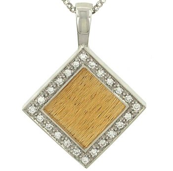 Ladies Textured Satin Diamond Shaped Pendant with Pave Diamond Trim Diamond .24cttw (Chain Not Included)